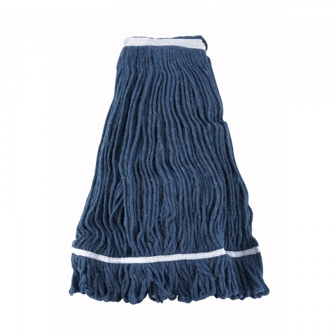 Wet Mop Head, 32 oz. (800 g), loop end, 1-1/4" band, 4-ply poly cotton blend yarn, blue (Qty Break = 20 each)