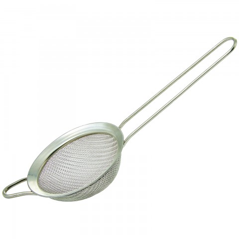 Strainer-Sifter, 3" bowl dia., 5-1/4"L handle, 8" O.A.L., handled, fine mesh, stainless steel (Qty Break = 12 each)