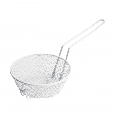 Breading Basket, 8" dia. x 3"H, medium mesh, non-stick white plastic coating, steel wire (Qty Break = 12 each)