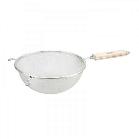 Strainer, 6-1/4" bowl dia., 6-1/2"L handle, 12-1/2" O.A.L., round, single tinned mesh, fine, wood handle (Qty Break = 12 each)
