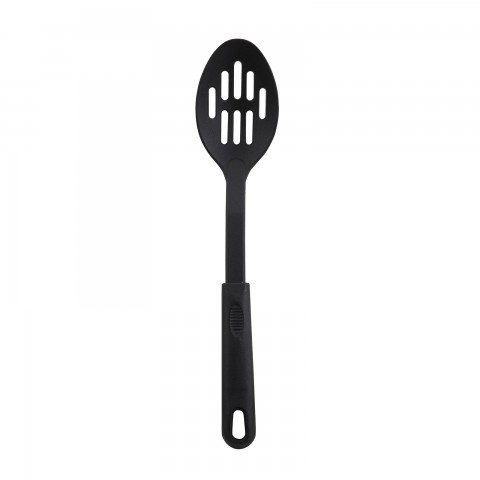 Spoon, 12" O.A.L., slotted, heat resistant up to 410°F (210°C), BPA free, nylon, black (Qty Break = 12 each)