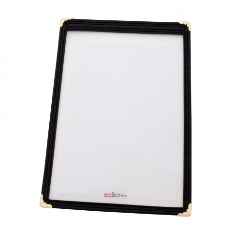 Menu Cover, single, overall 6-3/8" x 9-3/8", holds 5-5/8" x 8-1/8" paper, double stitched edging, plastic, black (Qty Break = 25 each)