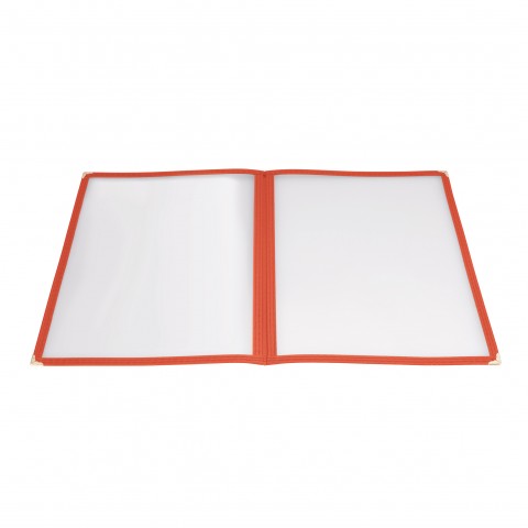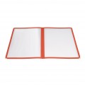 Menu Cover, double fold, overall 9-3/8" x 12-1/8", holds 8-1/2" x 11" paper, red, double stitched edging, plastic (Qty Break = 25 each)