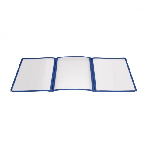 Menu Cover, triple fold, overall 9-1/2" x 12-1/8", holds 8-1/2" x 11" paper, double stitched edging, plastic, blue (Qty Break = 25 each)