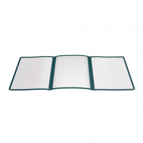 Menu Cover, triple fold, overall 9-1/2" x 12-1/8", holds 8-1/2" x 11" paper, double stitched edging, plastic, green (Qty Break = 25 each)