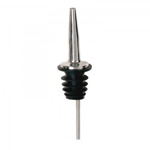 Liquor Pourer, medium flow, stainless steel breather tube, food grade poly plastic cork, tapered spout, stainless steel (Qty Break = 12 dozen)