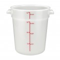 Storage Container, 4 qt., 7.38" x 8.63" x 8.25"H, round, temperature range: -40°F to 160°F, with built-in handles, graduation markings in quarts & liters, stain resistant, dishwasher safe, BPA free, polypropylene, white, NSF (Qty Break = 12 each)