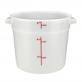 Storage Container, 6 qt., 9" x 10.38" x 7.75"H, round, temperature range: -40°F to 160°F, with built-in handles, graduation markings in quarts & liters, stain resistant, dishwasher safe, BPA free, polypropylene, white, NSF (Qty Break = 12 each)