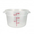 Storage Container, 12 qt., 12.25" x 14.06" x 8.44"H, round, temperature range: -40°F to 160°F, with built-in handles, graduation markings in quarts & liters, stain resistant, dishwasher safe, BPA free, polypropylene, translucent, NSF (Qty Break = 12 each)
