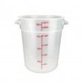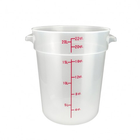 Storage Container, 22 qt., 12.25" x 14.13" x 14.81"H, round, temperature range: -40°F to 160°F, with built-in handles, graduation markings in quarts & liters, stain resistant, dishwasher safe, BPA free, polypropylene, translucent, NSF (Qty Break = 6 each)