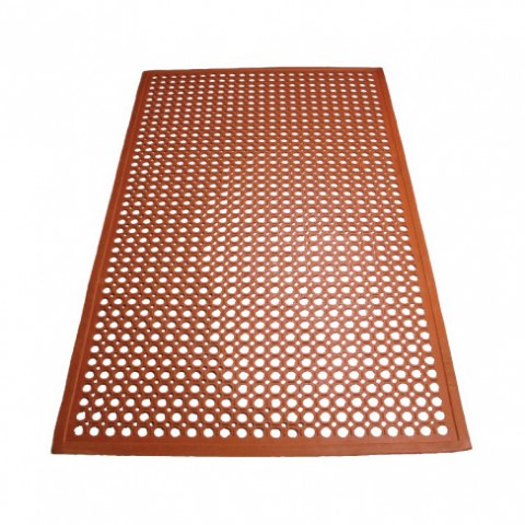 Floor Mat, 3' x 5' x 1/2" thick, rolled, anti-slip, anti-fatigue, grease resistant, beveled edges, rubber, red (Qty Break = 6 each)