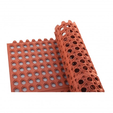 Floor Mat, 3' x 3' x 1/2" thick, anti-slip, anti-fatigue, grease resistant, interlocking, rubber, red (Qty Break = 6 each)