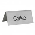 Beverage Tent Sign, "Coffee", 3"L x 1-1/2"W 1-1/4"H, stainless steel (Qty Break = 12 each)