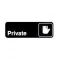 Information Sign, with symbol, 9" x 3"H, "Private", white imprint on black (Qty Break = 12 each)
