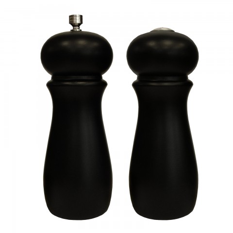 Salt Shaker & Pepper Grinder, 2-1/4" dia. x 6"H, round, rubberwood, black matte finish (2 pieces per set) (Qty Break = 12 set)
