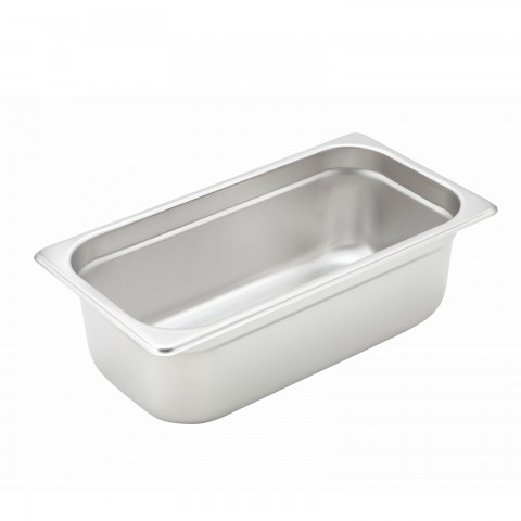Steam Table Pan, 1/3 size, 6-7/8" x 12-3/4" x 4" deep, 22 gauge heavy weight, anti-jamming, 18/8 stainless steel, NSF (Qty Break = 12 each)