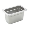 Steam Table Pan, 1/9 size, 6-3/4" x 4-1/4" x 4" deep, 22 gauge heavy weight, anti-jamming, 18/8 stainless steel, NSF (Qty Break = 12 each)