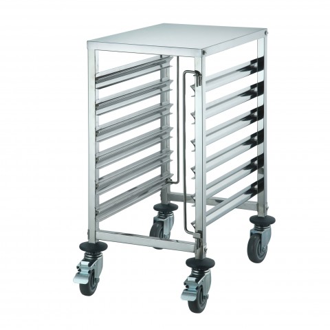 Steam Table/Food Pan Rack, mobile, under-counter, 15-1/8"L x 21-5/8"W x 31-1/2"H, 12-tier, fits 1/1, 1/2 and 1/3 size steam table pans, 1.5"-1.75" spacing, 4" non-marking swivel casters (2) with brakes, stainless steel (KD) (Qty Break = 1 set)