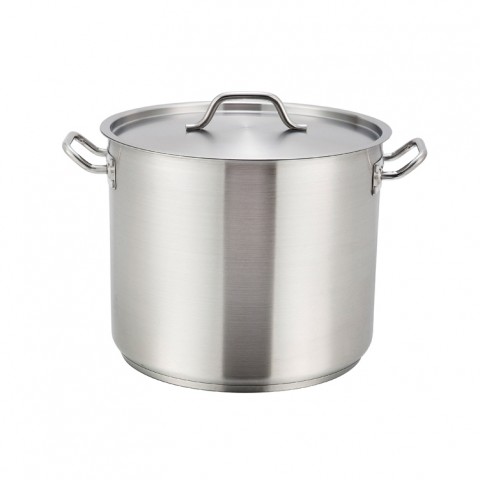 Premium Induction Stock Pot, 60 qt., 17-3/4" dia. x 14-1/4"H, round, with cover, welded handles, tri-ply heavy duty bottom, with aluminum core, 18/8 stainless steel, NSF (Qty Break = 1 each)