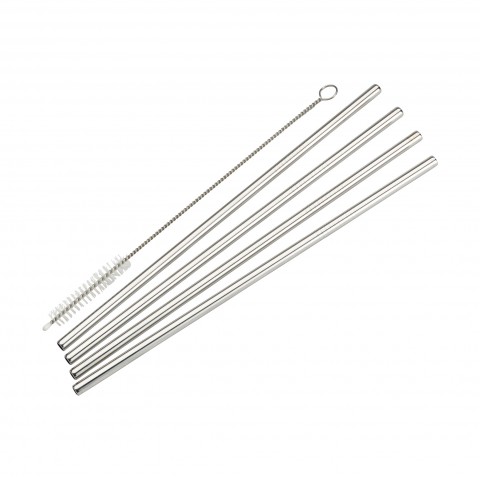 Drinking Straw Set, 5-piece, 1/4" dia. x 8-1/2"H, straight, includes: (4) straws and (1) cleaning brush, dishwasher safe, 18/8 stainless steel (Qty Break = 12 set)