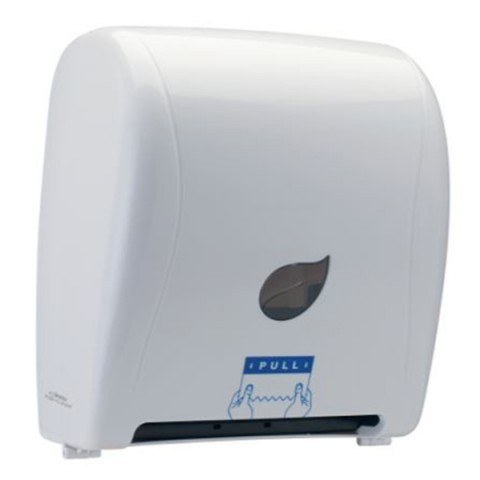Pur-Clean™ Auto Cut Roll Towel Dispenser, wall mount, hands-free, cuts 9" sheets with each pull, fist most types of 7-7/8" paper towel rolls, impact-resistant construction, white (Qty Break = 3 each)