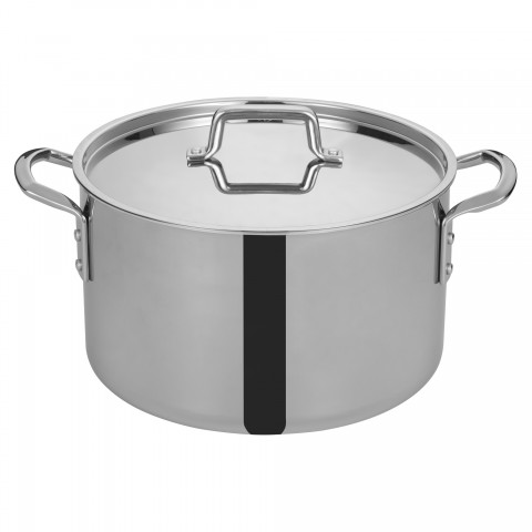 Tri-Gen™ Induction-Ready Stock Pot, 16 qt., 12-1/2" dia. x 9-1/16"H, round, with cover, riveted handles, triply, aluminum core, stainless steel, mirror finish exterior, satin finish interior, NSF (Qty Break = 4 each)