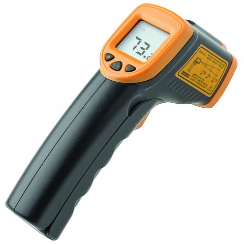 Infrared Thermometer, -26° to 608°F (-32° to 320°C) temperature range, 1" LCD display with backlight, automatic temp hold, laser on/off, distance to spot ratio (12:1), auto power off function (Qty Break = 6 each)