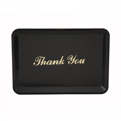 Tip Tray, 4-1/2" x 6-1/2", rectangular, plastic, black, gold imprint: "Thank You" (Qty Break = 12 dozen)