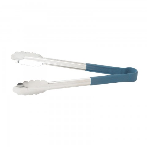 Utility Tongs, 16", for cold food service, scalloped edge, heavy duty plastic handle, stainless steel, blue (Qty Break = 12 each)