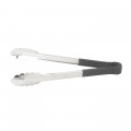 Utility Tongs, 16", for cold food service, scalloped edge, heavy duty plastic handle, stainless steel, black (Qty Break = 12 each)