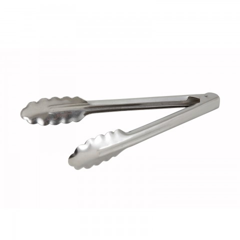 Utility Tongs, 9", coiled spring, scalloped edge, heavy weight 0.9 millimeter stainless steel (Qty Break = 12 each)