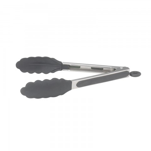 Utility Tongs, 9", locking clip, non-slip silicone tips & grip, heat resistant up to 400°F (210°C), 0.6mm thick, stainless steel (Qty Break = 12 each)