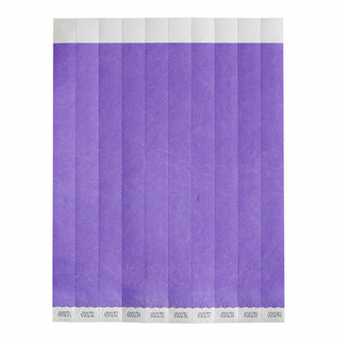 Bar Maid, Wristbands, 3/4"W X 9.5"L Tyvek (No Tear), Sequentially Numbered , Purple Solid, 500 Bands/Pack (Qty Break = 2 packs)