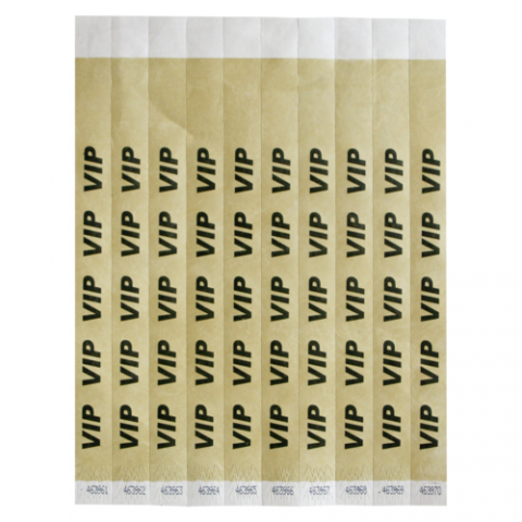 Bar Maid, Wristbands, 3/4"W X 9.5"L Tyvek (No Tear), Sequentially Numbered, Vip (Gold/Black), 500 Bands/Pack (Qty Break = 2 packs)