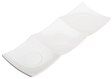 Trio Plate, 16-3/8" x 5-1/2", three-compartment, rectangular, break-resistant, dishwasher safe, melamine, Akila™, Ardesia™, white, NSF (24 each per case) (Qty Break = 1 case)