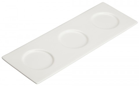 Trio Tray, 13-3/4" x 5", three-compartment, rectangular, dishwasher safe, porcelain, Mescalore™, Ardesia™, bright white (24 each per case) (Qty Break = 1 case)