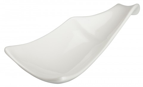 Plate, 9-3/8" x 3-1/2", free-form, medium, long, dishwasher safe, porcelain, Mescalore™, Ardesia™, bright white (36 each per case) (Qty Break = 1 case)