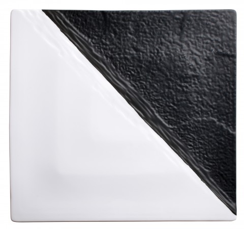 Platter, 13", square, dual texture, dishwasher safe, porcelain, Visca™, Ardesia™, black & white (2 each per pack) (Qty Break = 3 pack)