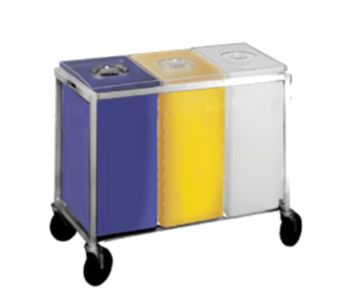 Ingredient Bin, Triple assembly, 1 white, 1 yellow & 1 blue bin, 3 clear covers, polyethylene, total capacity 225 lbs., aluminum frame with large 5" casters