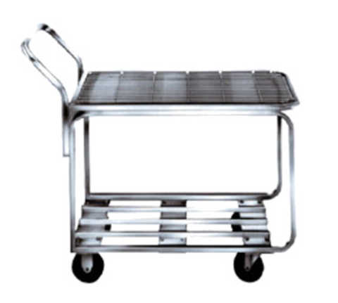 Stocking & Marketing Cart, 18" x 44", all welded steel with wire mesh top shelf, tubular bottom shelf, chrome finish, (2) 5" swivel & (2) 5" rigid rubber casters, 400 lb weight capacity
