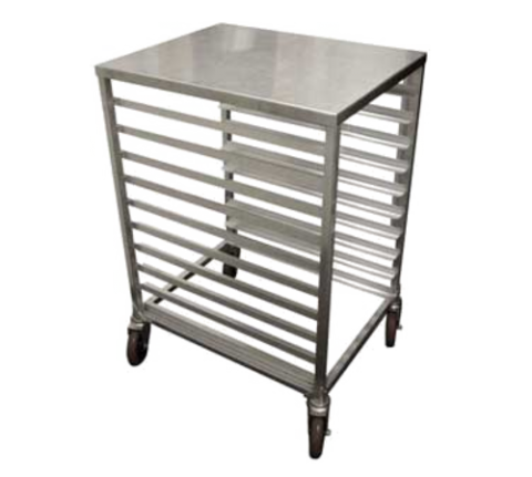 Pan Rack, mobile, half size, (10) 18" x 26" pan capacity, 3" spacing, end loading, aluminum frame, with removable stainless steel top