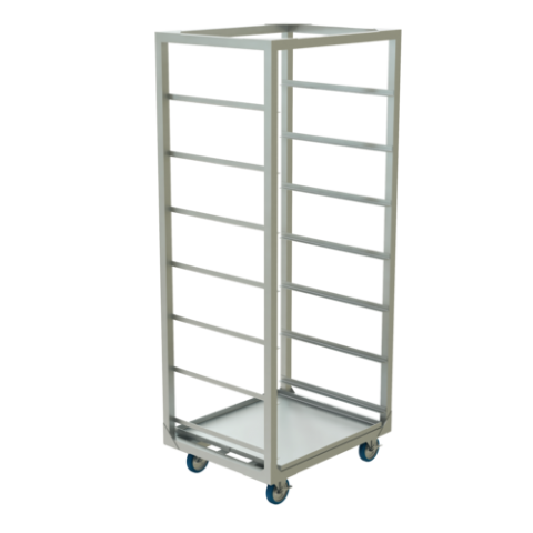 Crisper Rack, 26"W x 32.5"L x 79.75"H, holds (7) WHBTT-1551 crisping trays, aluminum, 5" polyurethane casters - (2) swivel and (2) rigid, NSF