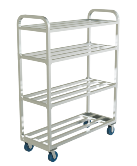 HD Cooler Shelving, 24"W x 60"L x 79.5"H, (4) 1.5" tubular shelves, 6" low-temp, aluminum, polyurethane casters - (2) swivel & (2) with brakes, NSF