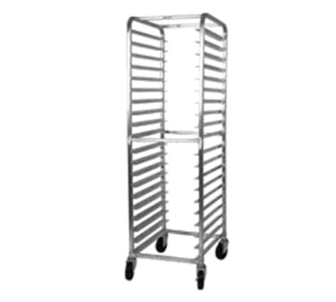 Refrigerator Rack, 20-7/8" x 26" x 64-1/4", all welded aluminum construction with angle slides, (11) pan capacity, 5" polyurethane plate casters, NSF