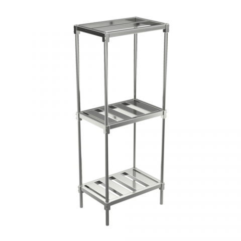 Beer Keg Rack, all welded heavy duty aluminum construction, E-channel, 3 shelves, top aluminum tubular shelf, all shelves are adjustable, 20"W x 30"L x 76"H, NSF