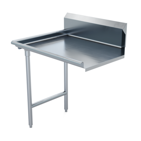 Straight Clean Dish Table, left to right, stainless steel legs and clad bullet feet, 16 gauge 300 series stainless steel, 72"L x 30"W, NSF (contact factory for price)