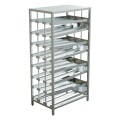 FIFO Can Rack, 27.2"W x 42"L x 81.2"H, holds (156) #10 cans & (208) #5 cans, (3) columns with (4) first-in first-out sections, adjustable feet, welded aluminum construction, NSF, Made in USA