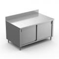 Storage Cabinet, enclosed with sliding doors, 60"W x 24"D x 34"H, 16/304 stainless steel top & legs with clad bullet feet, 6" backsplash 90 degree up-turn, no return, NSF
