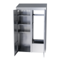 Mop Sink Cabinet, 24"W x 50.5"L x 84"H, stainless steel, (4) shelves, (2) hinged doors, 15⁰ slanted top, tub on right side of unit, 16"W x 20"L x 12"D tub dimensions, 3.5" recessed drain, vents on back and sides of unit