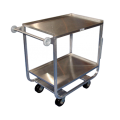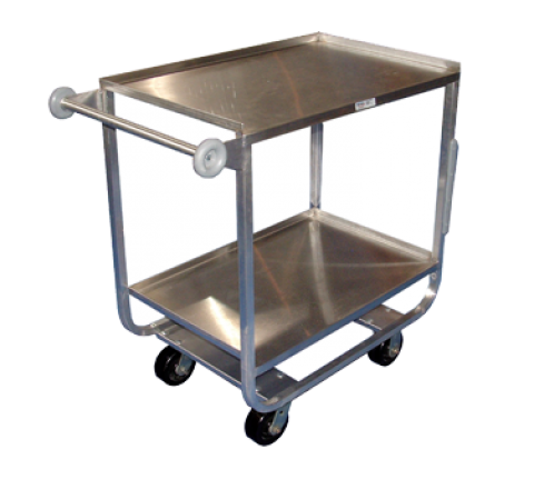 Utility Cart, two shelves, 500 lbs per shelf, open base, 21" x 33" shelf size, all welded stainless steel construction, 5" plate casters, rolling capacity of 2800lbs, NSF